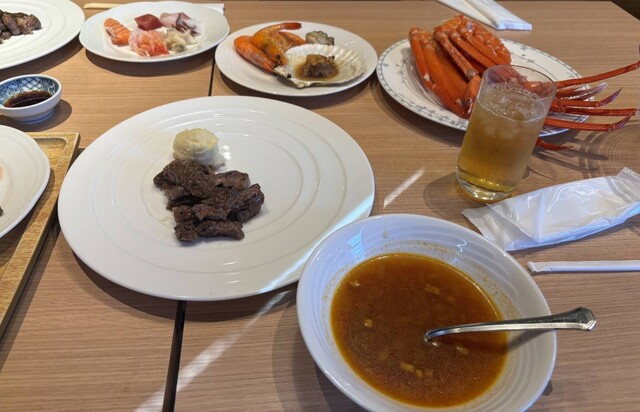 定番のメニューに加え、毎月のフェアメニューをお楽しみくださいませ!1月は「新春グルメフェア」! 2025年8月1日より料金が変更となります。 大人、シニアのお客様の料金は変わらず、小学生3080円→2500円、幼児1980円→1000円と大幅値下げ! 蟹の食べ放題は大人プラス600円、小学生はプラス300円です。 尚、12月31日から1月4日までは年末年始料金で、 大人5,400円、シニア5,000円、小学生3,780円、幼児2,500円です。