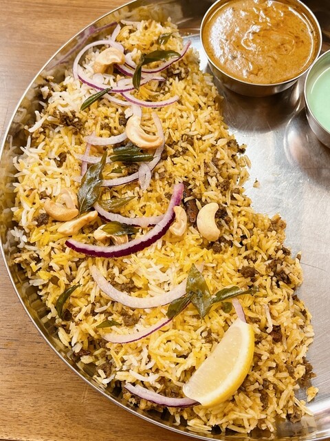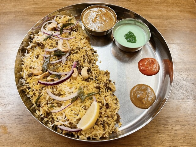 JR元町駅から歩いて行きました。 休日の昼に初訪問。 2人テーブルが4つ、カウンター2席の小さなお店。 多種類のメニュー。 ハイデラバードビリヤニ マトン 1650... 詳細を見る