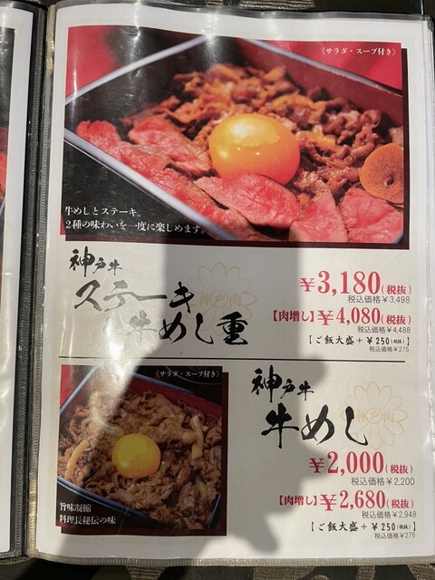ランチで、神戸牛ステーキ牛めし重を注文しました。