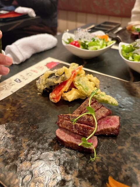 ・神戸牛レアステーキがとっても美味しかった。特に塩で食べることができるところが良かった。