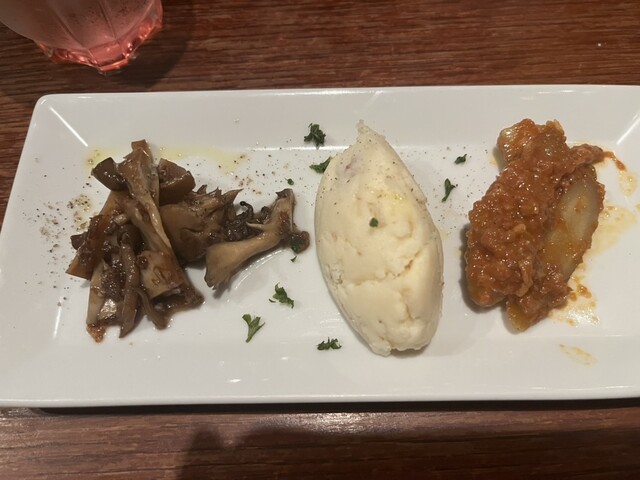 早めのご飯にしようとなったので土曜日16:30予約で行きました。 1階席に通されましたが、流石にこの時間帯には先客がいませんでした。(2階席に先客がいたかは不明です) オーダーしたのは写真のもので全てです。 前菜3種とドリンクのお得なセット(700円)から始めました。 アボカドの漬けは、... 詳細を見る