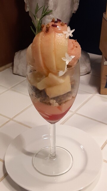 カレーとパフェが有名なお店で、ずっと桃のパフェを食べたいと思っていたのですが、お腹が空いたので、ついカレーを注文してしまいました。