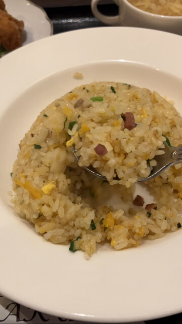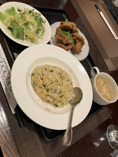 チャーハン、若鶏の唐揚げ、サラダ、本日のスープ