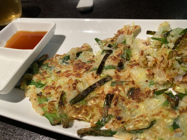 焼きたてチヂミ、具沢山の鶏チゲ、ナムル等の前菜などそれぞれめっちゃ美味しい野菜たっぷり取れますよ✋