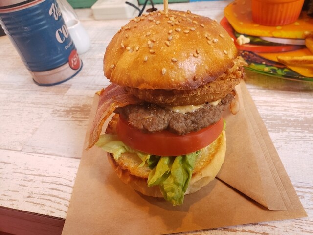 アメリカンでボリューミーなバーガーに惹かれていざ入店。 インスタ経由で知りました。 流行りの女子向け映えカフェかな?と思いきや 店内はどちらかというと もう少し大人世代... 詳細を見る