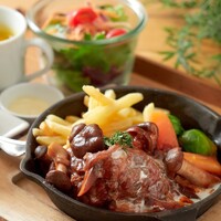 メインをパスタやお肉料理から選べるプレートランチです。 価格はお選びいただくメインによって異なります。 表示価格は1,480円ですがこれは平日限定ランチの1番安いメニューの価格です。 土日祝日は1,680円~になります。 ※写真はハンバーグランチ平日1,580円、土日祝日1,880円です