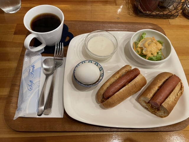 モーニングメニューにカレーもあり、そちらも気になったのですがメニューにわざわざホットドッグのキャベツがカレー味である旨、大きく書いてあったのでやはりこち...