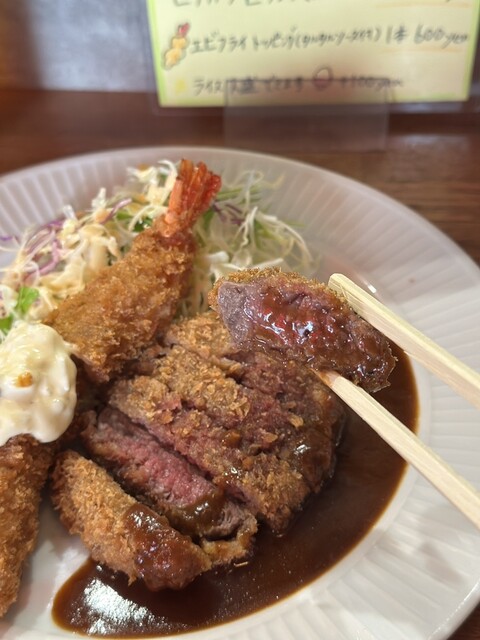平日の13:10頃に伺いました。 ピークを外してやってきたので先客1名。 ピーク時は店外に行列ができているので、いい感じに捌けたあとのようです。 こちらはビフカツ専門で、... 詳細を見る
