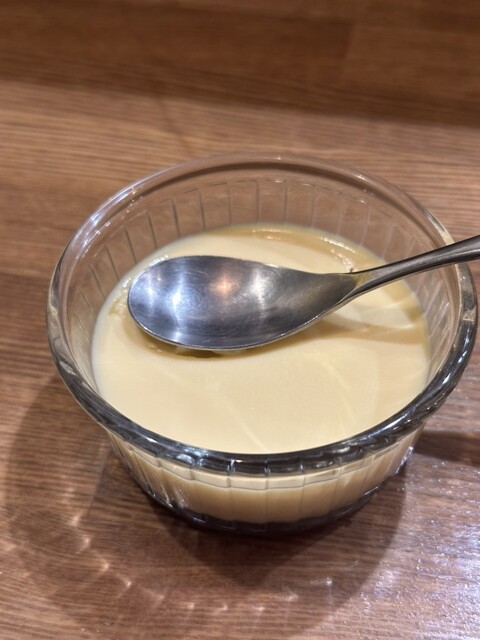 カウンターから先にお水のあと、たまごスープがカップ...