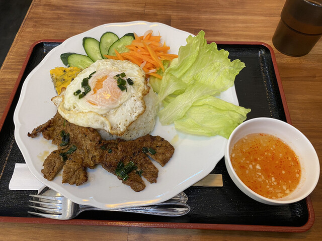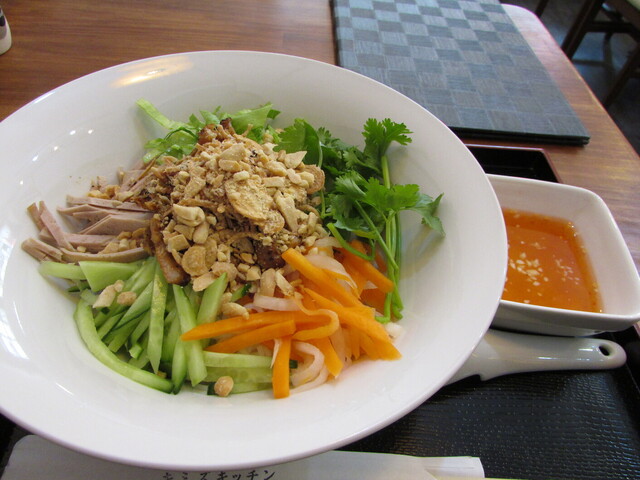焼き豚肉のせ和え麵(ブン ティット ヌン) 、 柔らか細フォー麵に甘味と酸味と辛味のタレ(^_^) 焼き豚肉、外カリ中歯応えしっかり、旨味と甘味(^_^) パクチーの風味が利いてる... 詳細を見る