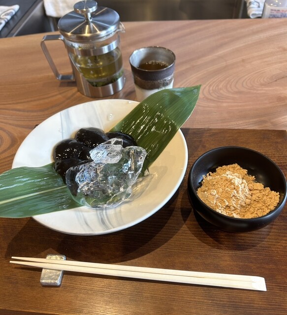彼女は葛もちに冴え綠、オヤジは大好きなほうじ茶をいただく。