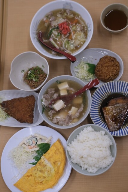 よ〜いドン! で紹介させていたのを妻が見ていて、元々は社員食堂から一般にも提供する食堂になったらしく、おかずがずらりと並んでいて早朝からやっている、一度行ってみたいと言うので日曜のお昼に訪問しました、 場所は43号線の岩屋駅近くで店の横に5台ほど停められる駐車場があります、入店したのは12時40分... 詳細を見る