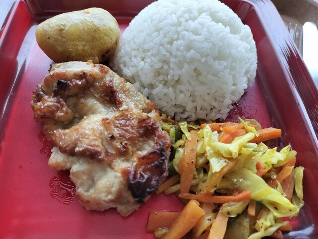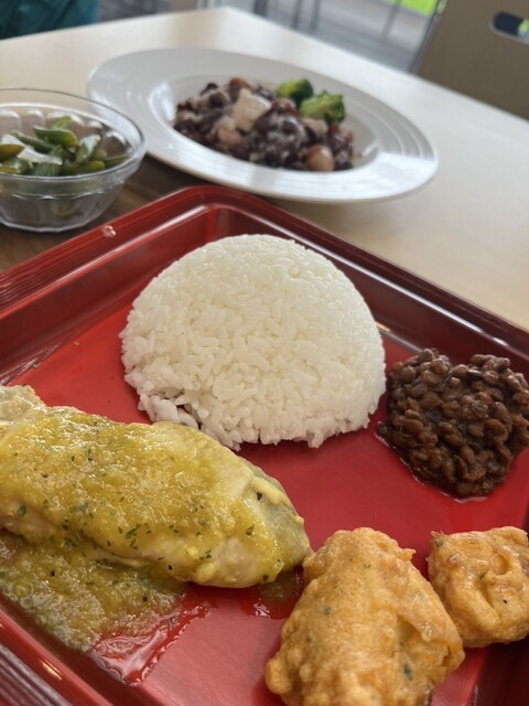 そして、お昼はJICAの食堂。お目当ては月替わりのエスニック料理。入り口でメニュー番号の券を取り、レジでお金を払い、セルフで料理をもらうシステム。先に席を取ってはいけません。注意されます...