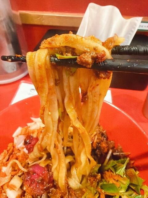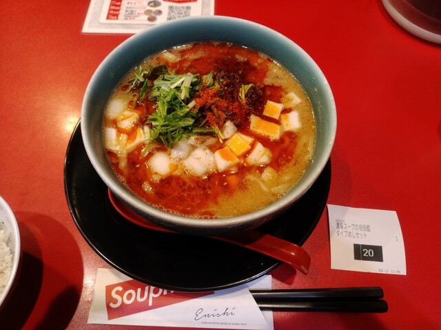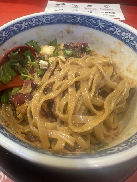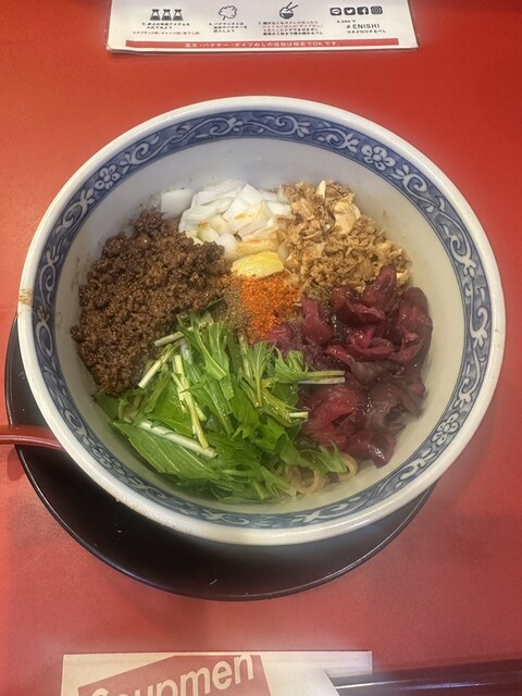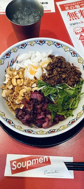 入口にあるタッチパネル式の注文機で注文、お会計。 現金とペイペイのみの支払いです。 客層の多くは男性。 今回は汁の入った担々麺にしました。 筋トレ帰りなので、ちょっと多めに... 詳細を見る