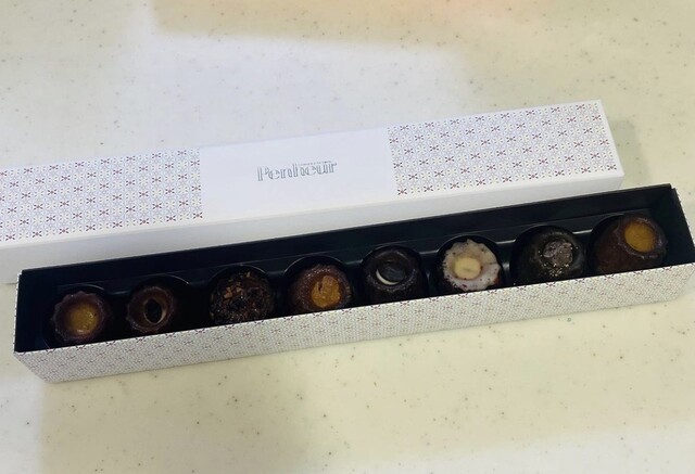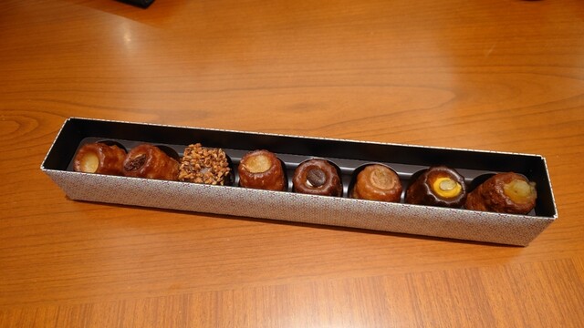 一口サイズのカヌレは、しっとりもっちりしている。小振りで高級感が漂うカヌレ。味がむっちゃ種類...