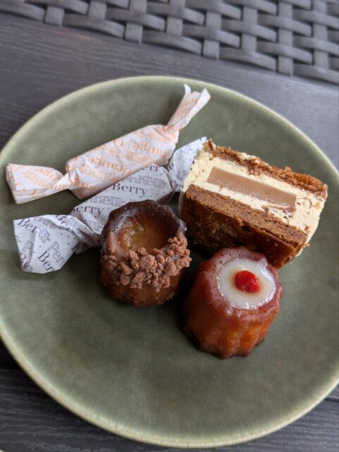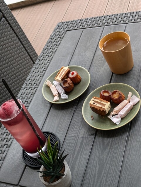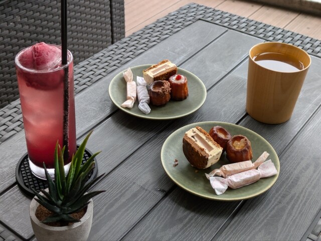 土曜日の夕方16時頃に訪れ、テラス席で ドリンクとのセットメニューを 2セットいただきました〜 セットには 一口サイズの可愛いカヌレ2種類 生キャラメル2種類 バタ... 詳細を見る