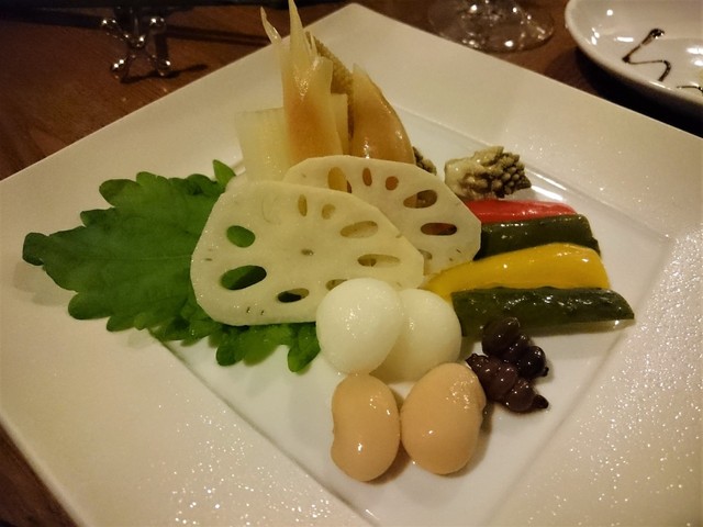 何気ない見た目とは、裏腹に、手の込んだ一品料理がずらり。 下町感の強い阪神深江で、このレベルのフレンチにありつけるなんて、しあわせ。 とりあえず、【野菜料理の盛り合わせ】でお店の腕を楽しんでください。