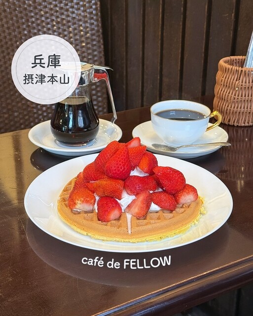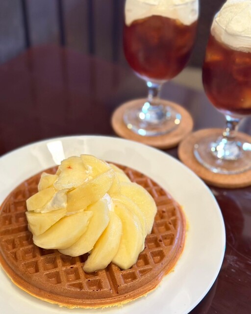 神戸 岡本 Cafe de Fellow さんへ いただいたのは ワッフル 桃 ハーフ / 1,375yen ブレンドコーヒー アイス / 495yen(セット価... 詳細を見る