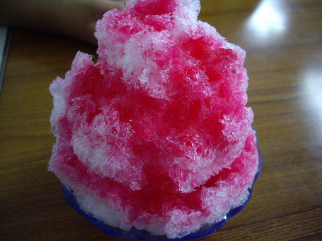 透明度の高い大きな氷を、昔ながらの機械で丁寧に細かく砕いて20cmぐらいの高さまで積み上げてくれます。