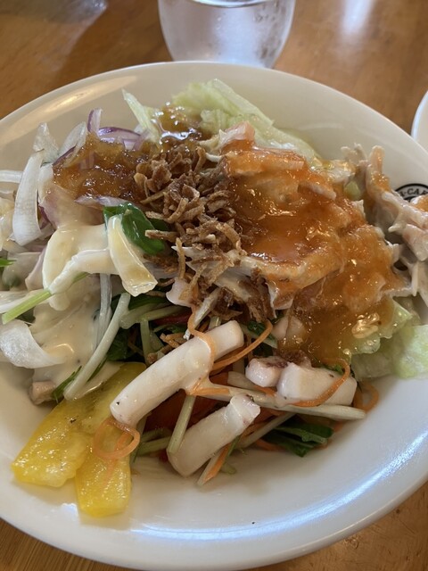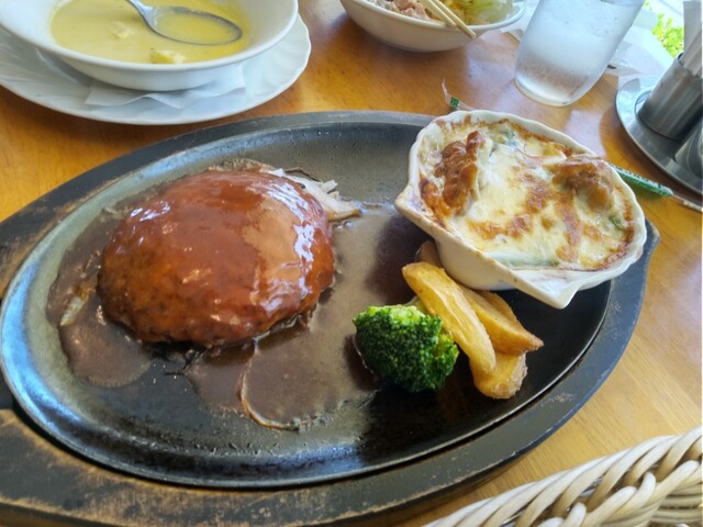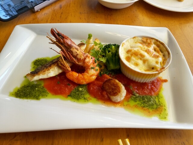 予約をしていましたので窓際の席へ案内されます。誕生月のハガキを渡して、まずウエルカムドリンクをお願いし、続いて海の幸のスペシャルアソート2189円とハンバークステーキ、窯だしパン627円を頂きました。パンが美味しくお代わりを繰り返すとこれだけでお...