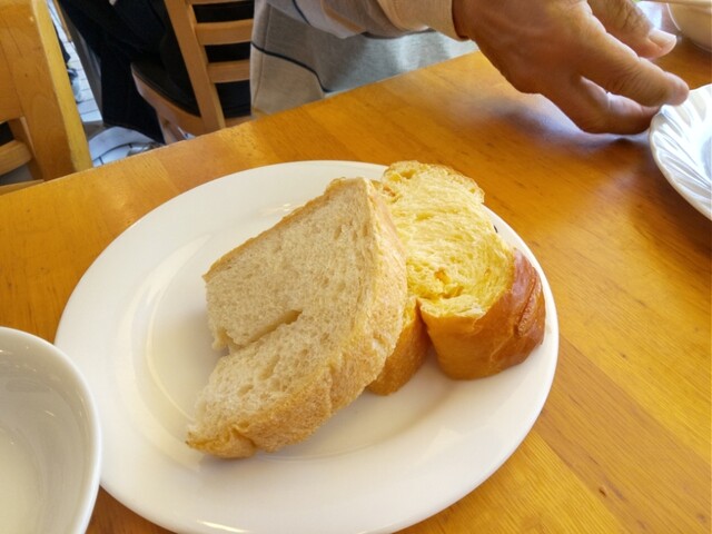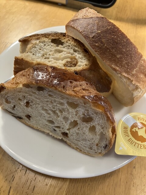 店内で手づくりしている、焼きたてパンはおかわり自由 |