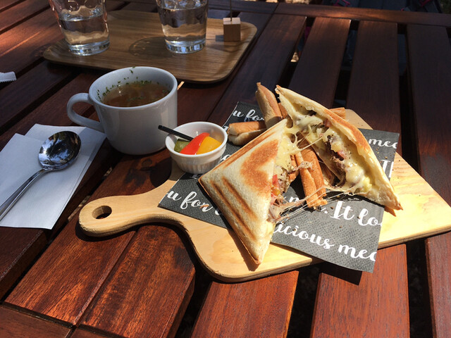 大雨の中六甲山にドライブに行った帰りに寄りました。ゴルフ場に向かう細い山道の奥にお店があります。ジャズがかかっていてとっても雰囲気のいいカフェです。 自家製コンビーフのホットサン... 詳細を見る
