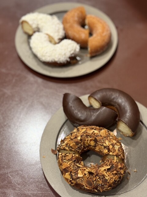 久々に訪問しました。 今日は結構既に在庫が無くなっていたので、選ぶものがやや少なかったです。 プレーンを3つとチョコ3つ頼みました。 ほうじ茶のドーナッツが一個プレゼントだっ... 詳細を見る
