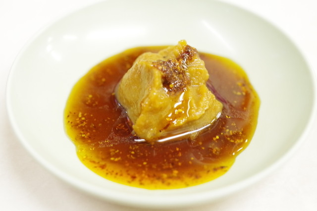 肉肉しい肉厚餃子には、甘め味噌ダレ。