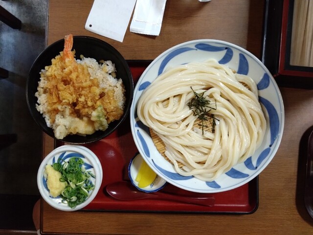 平日の11時42分に訪問。店外に2名待ちでした。その場で、先に店員さんが注文を聞いてくれます。天丼を注文。ミニミニうどんはミニざるうどんに変更です。