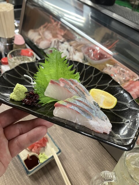 連れが食べたがってたマグロのすき身と、店入る前に地元民らしきおっちゃんが「今日はシマアジがええみたいやで...