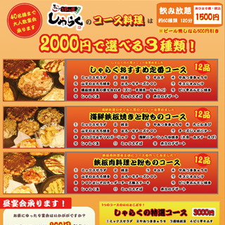 | サービス | 2時間半以上の宴会可、お祝い・サプライズ可、テイクアウト |