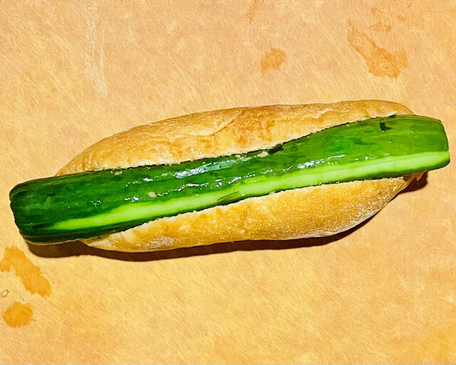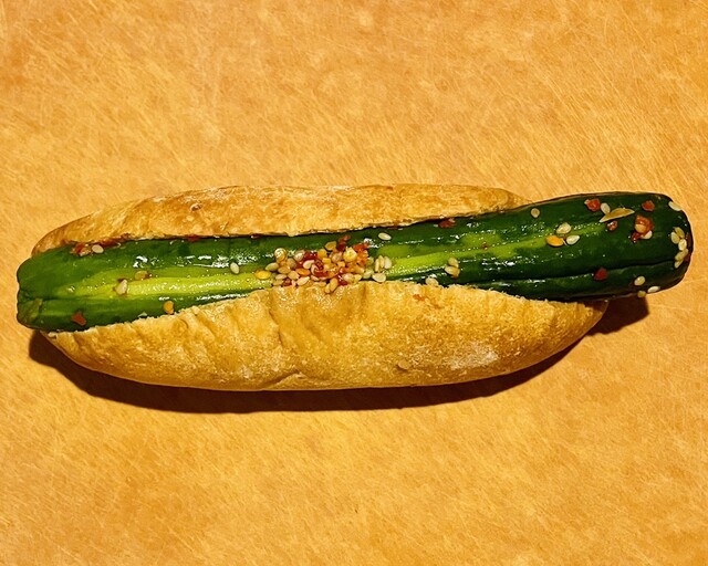 以前お邪魔した時に売れ切れていて購入出来なかった、つけものドック。2回目の訪問で手に入れました! 少しハード気味のパンにきゅうり一本挟んであります。 唐辛子っぽいのがふりか... 詳細を見る
