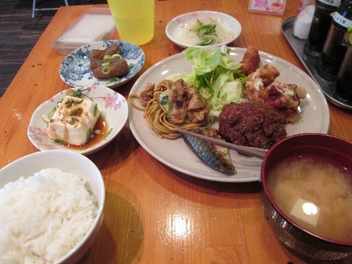 今日は、メガチューハイにおばんざい四種盛りを注文しました。