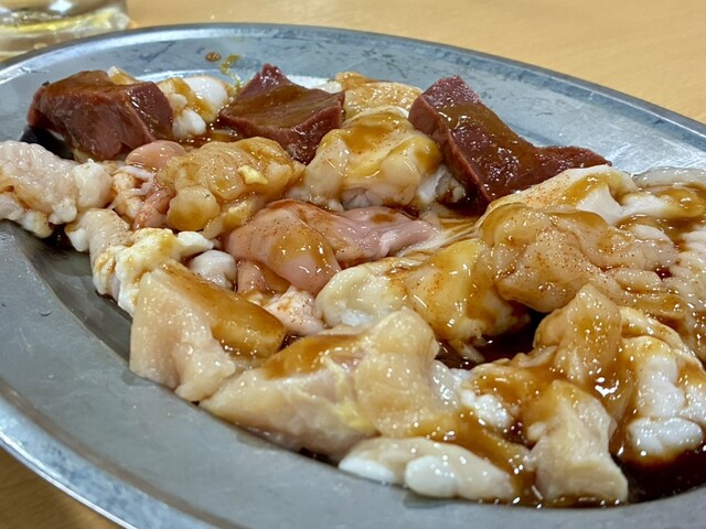 店名を冠する「ホルモン」これはマストでしょう。ホルモン盛り(1200円)はミノ、テッチャン、ウルテなどがバラ積み。その色艶から「新鮮だよ!美味いよ!」という彼らの叫びが伝わってくるし、実際文句の付けようがない。ぜひ「塩」で