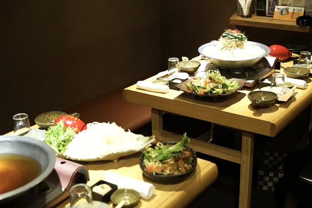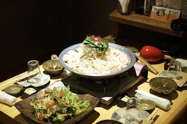 丹波味わい鶏や新鮮な魚介を使用した逸品が自慢の当店。一押しメニューの名物「塩もつ鍋」をはじめ、忘年会・新年会など各種ご宴会にもぴったりのお鍋や、飲み放題付コースも豊富にご用意しております!落ち着いた照明に包まれた店内には、カウンター席とテーブル席を完備。テーブル席は結合できるため、グループでのご利用にも◎35名様以上で貸切利用も可能ですので、大人数での大宴会にもぜひご利用ください♪