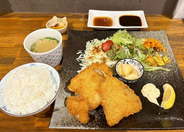 「サービスランチ」のメニューから「あじフライ定食(950円)」を注文です。