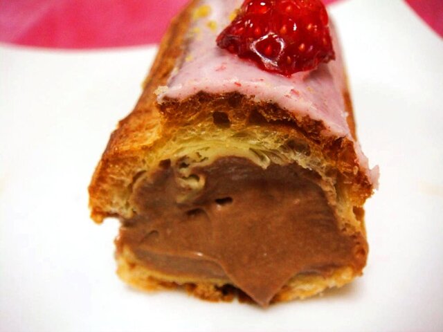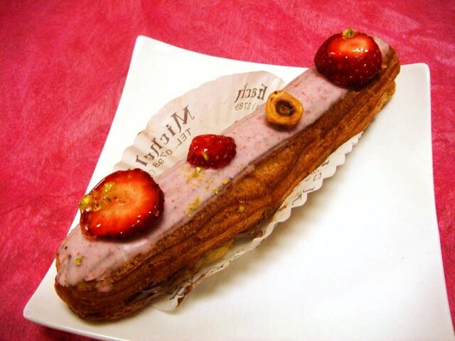 【いちごのエクレア】シュー生地がしっかりと焼いてあって、最初固いかなって思うけど