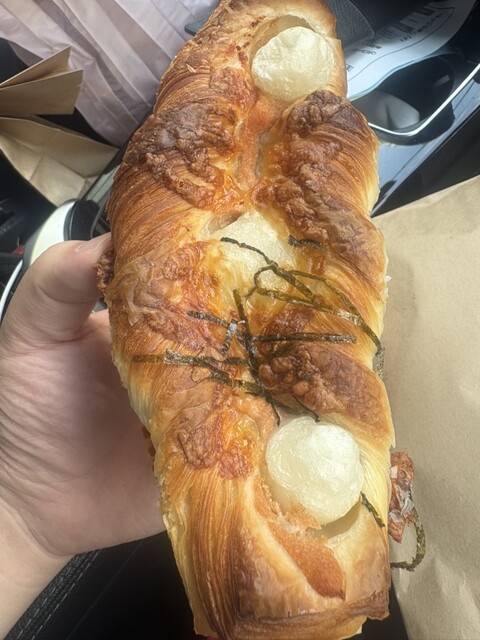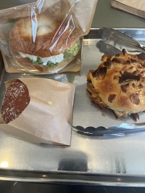 ツナメルトベーグル420円とマラサダ?ハワイのドーナツにあんと生クリームがはさまってるもの350円を購入しました。