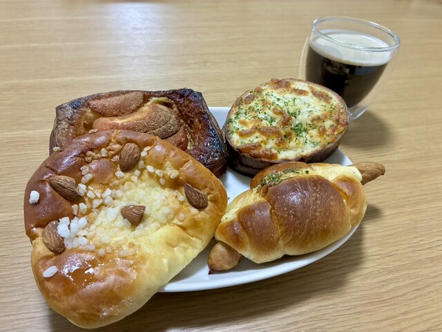 クリームパン、ソーセージパン、クロックムッシュ、リンゴのデニッシ...