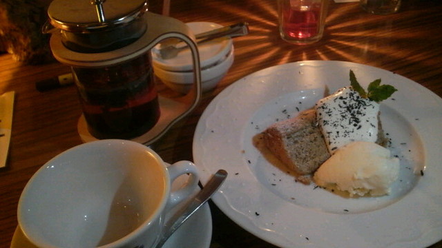 上から紅茶の葉かな?がかかってる、食べた事のないスタイルでした。