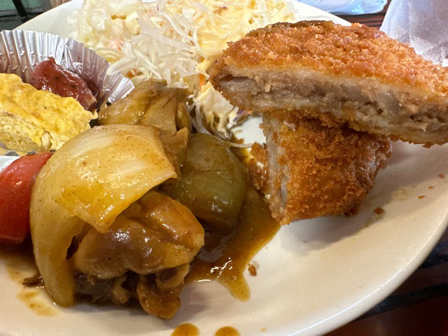 ランチは入り口に4種類ぐらいランチのメニュー看板があり、中にもそれなりにあります。外にあるのはおすすめや人気メニューかな?今回は2人で訪問していたので、2種類食べることができました。