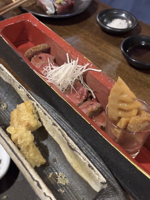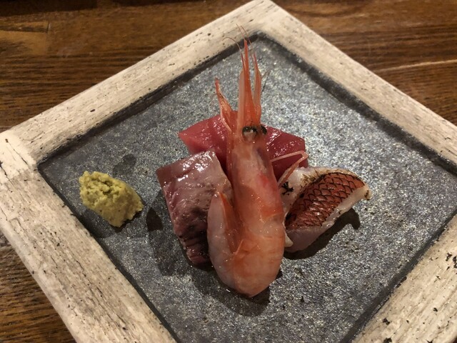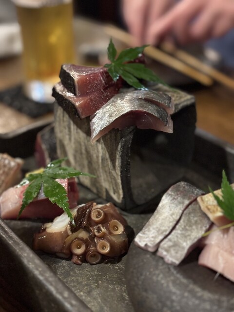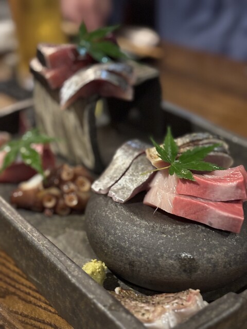 初めにご提供するのは、数品を盛り合わせたこだわりの付き出し。毎日市場で仕入れる鮮魚で作り上げる逸品や、厳選した日本酒をはじめ豊富な銘酒をご用意しております!季節ごとにメニューが変わるため、訪れる度新たな一皿に出会える楽しさも魅力のひとつ。カウンターとテーブル席を完備した店内では、落ち着いた雰囲気の中でゆったりとお寛ぎいただけます。おひとり様からグループでのお食事まで、幅広いシーンにご利用ください。