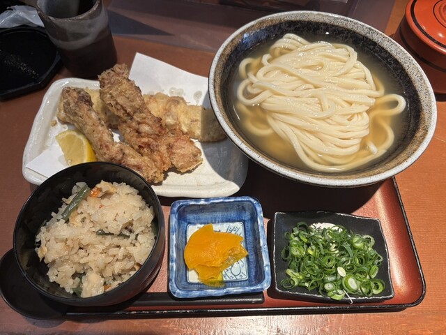 ランチCセットでうどんに天ぷらとかやくご飯がセットにな...