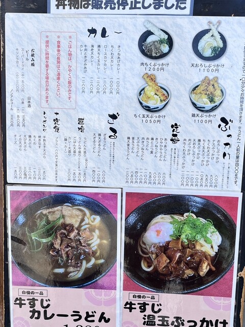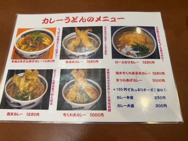 鶏天も、ちくわ天も、肉も、カレーもどれも美味しそう。。。。。...