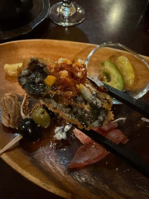 イカ墨リゾットコロッケはスパイスが入ってて、立体感のある味。