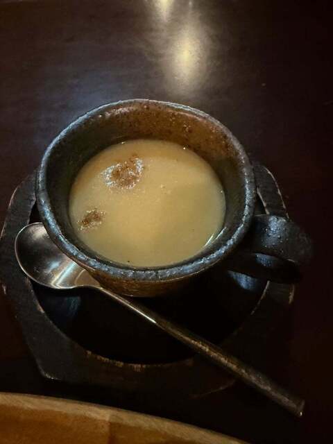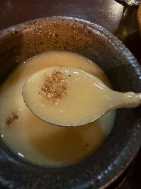 この日はひよこ豆のポタージュ。デュカ(ナッツとスパイスと塩)らしきものがトッピングされていて、スープの旨味を引き出していました。ここ最近で飲んだスープの中で個性があり、良い味でした。