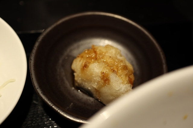 小鉢は揚げシュウマイ半分に黒酢掛け