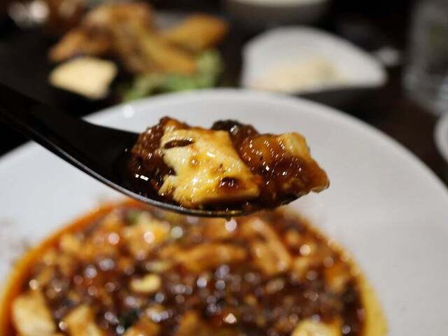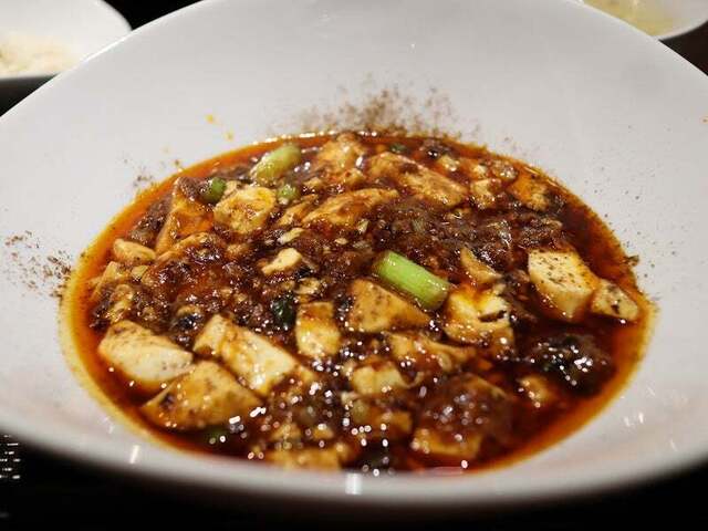 麻婆豆腐かなり美味しいです。トーチージャンを使ってて辛さも花山椒の痺れもちゃんとあるんだけど、いきなり来るんじゃなくて、まず麻婆豆腐の自体の美味しさが来て、その後にじわーと辛さに花山椒が来るんですよ。