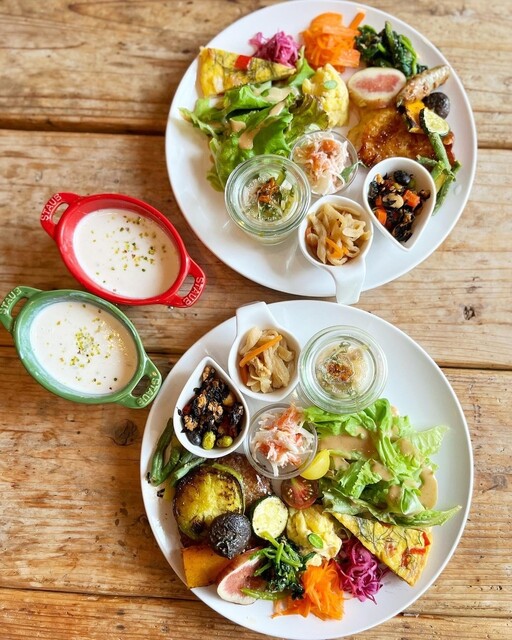 お野菜たっぷりの日替わりランチ ◯ ◻︎鶏肉のソテーと副菜いろいろプレート ◻︎ハンバーグと副菜いろいろプレート ワンプレートでこれだけたくさんの おかずをいただ... 詳細を見る