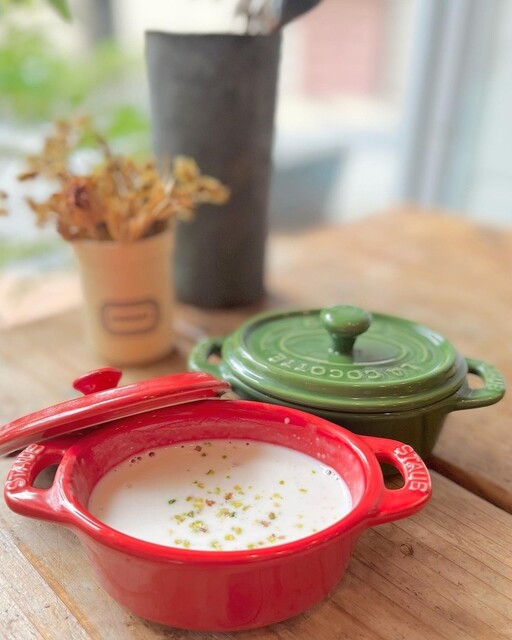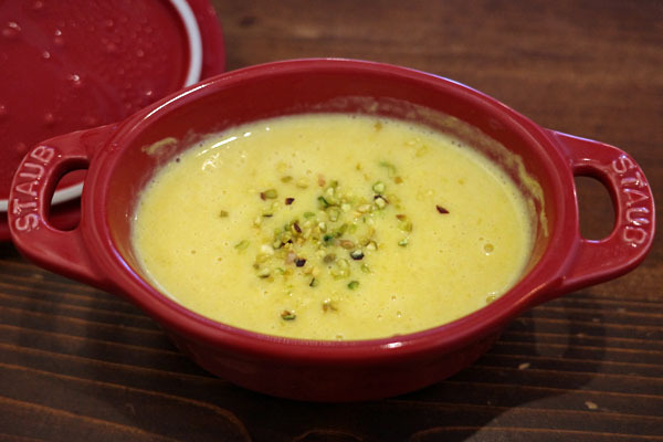 この日のスープはかぼちゃのスープです。STAUB に入って出てきます。